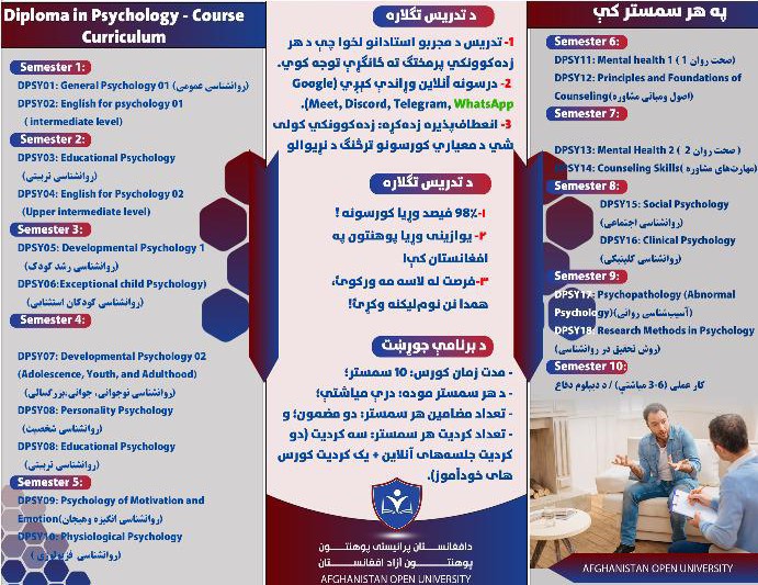This diploma covers core areas of psychology, including basic psychological theories, human development, mental health awareness, and interpersonal communication. The program emphasizes practical understanding, ethical considerations, and real-world application of psychological principles. It is suitable for students seeking entry level knowledge or professional development in psychology related fields.
