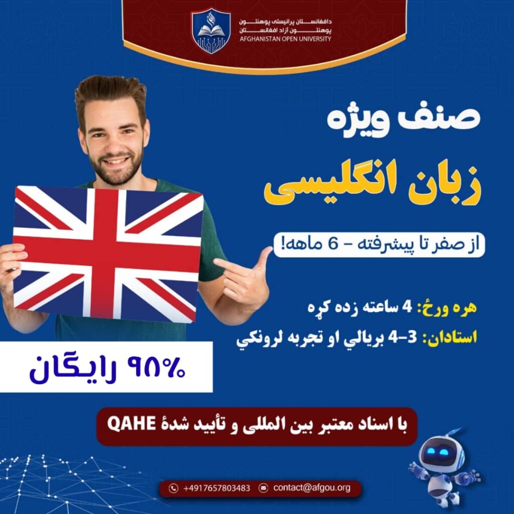 🎓 Now, with Afghanistan Open University (AOU), you can learn English from beginner to advanced level in a professional and practical way in only 6 months!
