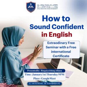 Unlock the power of your voice and transform your English skills! Join our online seminar, “How to Speak English with Power and Confidence,” to learn practical techniques for effective communication. Whether you want a stronger voice or clearer speech, this seminar is for you. Don’t miss the insights from our expert presenter, Ms. Ruqaiya Ishaq Alana. Reserve your spot today and enhance your communication skills!