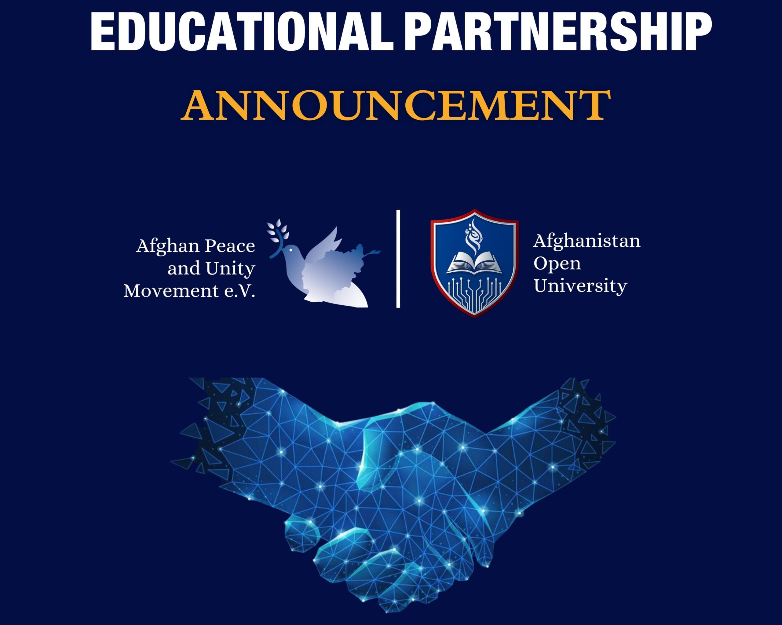 Afghanistan Open University (AOU) is honored to partner with the Afghan Peace and Unity Movement e.V., a Germany-based non-profit organization dedicated to promoting peace, education, and social development among Afghan communities worldwide. Through this collaboration, AOU and the Movement aim to expand access to free, high-quality online education and create joint initiatives that empower Afghan youth especially women through knowledge, unity, and innovation. Together, we are building bridges between Afghan communities at home and abroad to support a brighter, more educated future for Afghanistan.