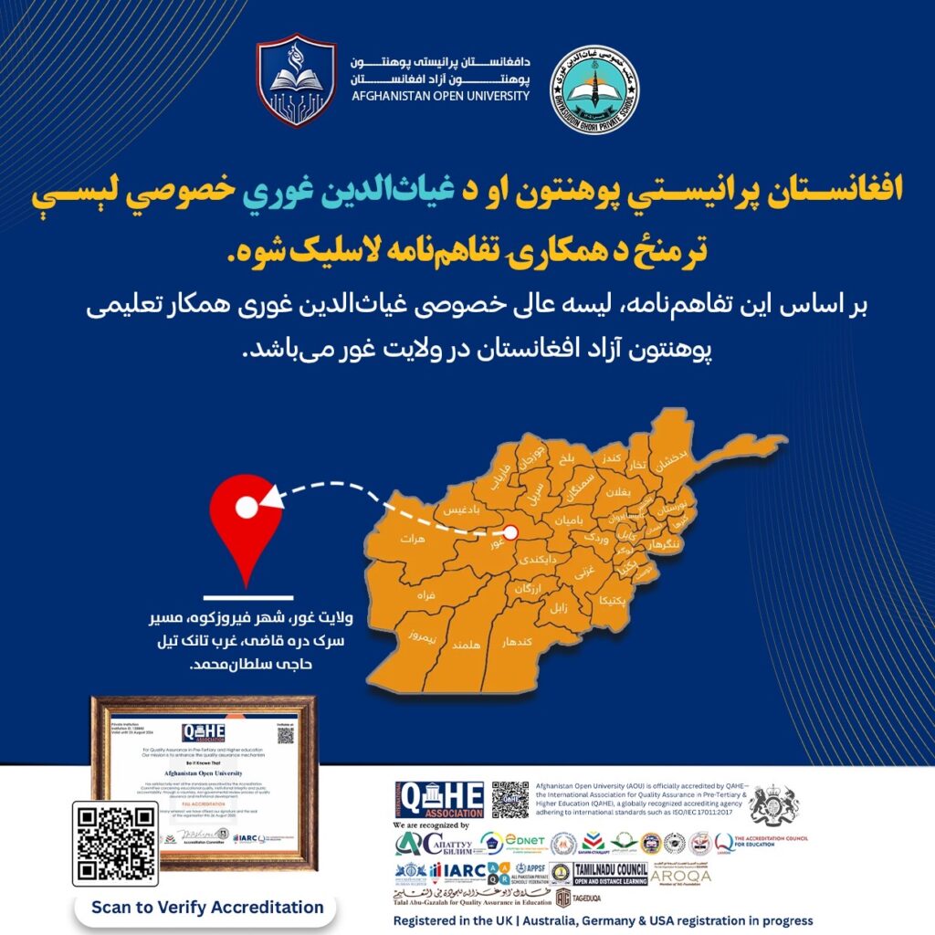 Afghanistan Open University and Ghiyathuddin Ghori Private School have officially signed a cooperation agreement to strengthen educational capacity and expand learning opportunities in Ghor Province. ππ€